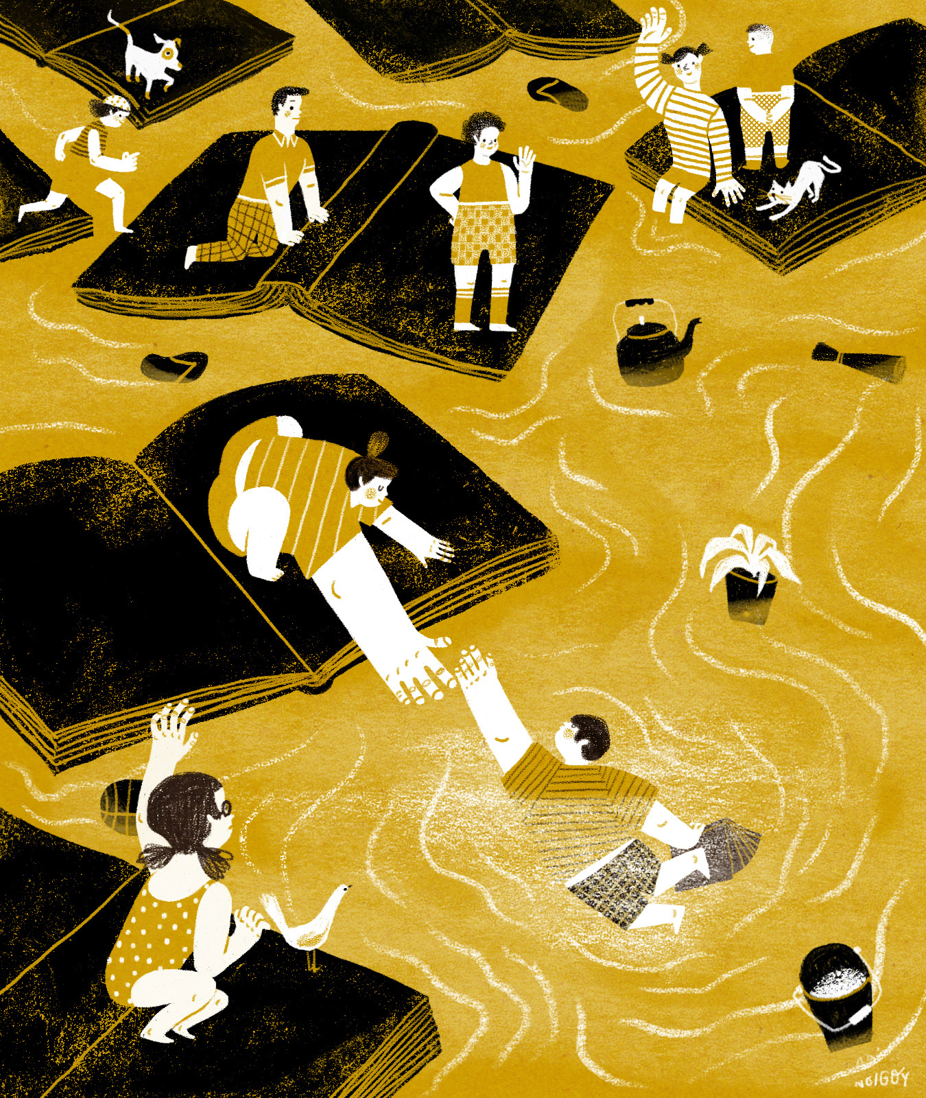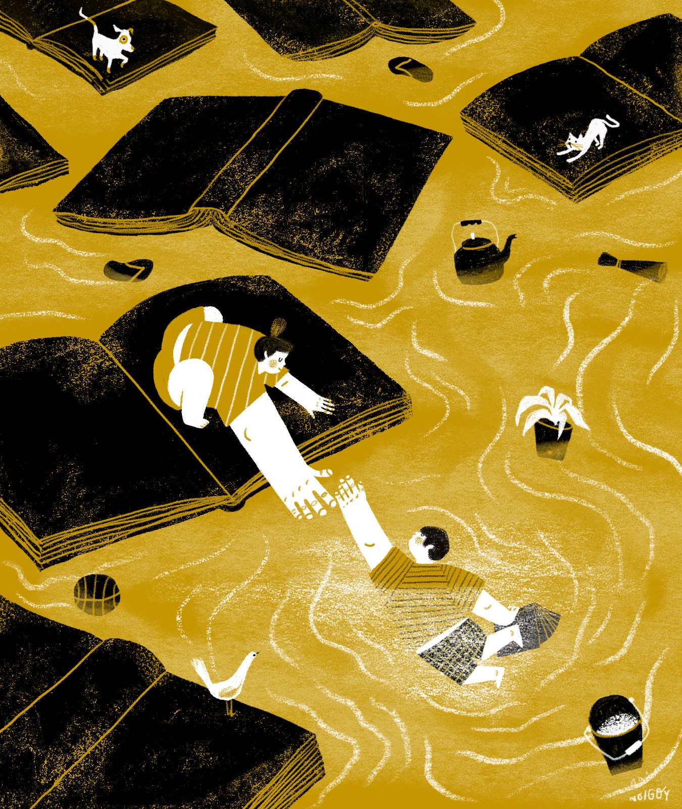 Part of an online exhibit of Ang Ilustrador ng Kabataan (Ang InK) to celebrate the 2020 National Children's Book Day. Exhibit title is "Kapit: Sa pagbabasa, hindi ka nag-iisa"